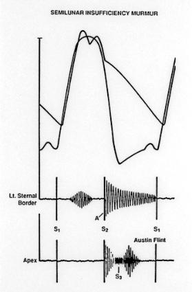 aorta to the left ventricle. This produces a high-pitched decrescendo murmur, which begins with the